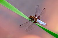 Ik ontdekte de libel bij een vijvertje. Hij was constant in beweging en bleef maximaal twee seconden op één plek. Het was dus even zoeken tot ik het insect goed kon fotograferen op een grasspriet.