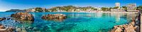 Strandpanorama van Platja Palmira in Peguera op het eiland Mallorca, Spanje Middellandse Zee, Mallorca