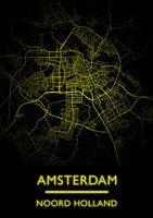 Een prachtige plattegrond van Amsterdam. Alle straten en wegen komen in een mooie goudkleur naar voren. TIP! Dit werk is aan te bevelen op aluminium zodat u een prachtige diepte krijgt.