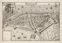 Een plattegrond van Medemblik, destijds nog aan de Zuiderzee (ca 1599). De tekening is ter beschikking gesteld door het Rijksmuseum te Amsterdam.