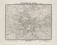 Vintage kaart van Parijs, uit 1889, perfect voor iedereen die houdt van Frankrijk, oude kaarten en historische reisthema's