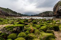 Het strand Cuevas del Mar in Llanes is een van de mooiste stranden in Asturias. Foto is genomen tijdens eb.
