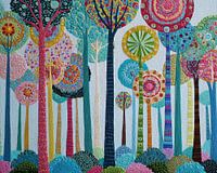 Details: bomen, abstract schilderij, kleurrijk, moderne kunst, vrolijk, natuur, decoratie, speelse…