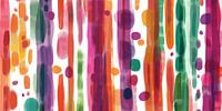 "Playful Strokes" is een levendig en speels kunstwerk dat de schoonheid van eenvoud en kleur viert. Verticale penseelstreken in rijke tinten zoals magenta, oranje, groen en paars worden afgewisseld met zachte, organische vormen, wat een dynamische en vrolijke compositie oplevert. De transparante laagjes en imperfecte randen voegen een…