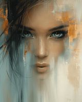 Modern en abstract portret van een jonge vrouw met sprekende ogen. Kies zelf het formaat en materiaal bij dit werk en maak er een echte blikvanger van voor jouw interieur.