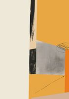 A contemporary abstract piece combining hard-edge geometrics with expressionist scribbles. The composition uses vibrant warm yellows and oranges to convey a sense of pure, unadulterated pleasure. Large, clean-edged color blocks offer a rational structural beauty, contrasted by spontaneous, almost chaotic scribbles in the upper right…