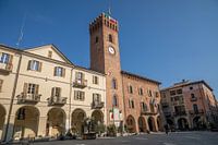 Plein en kerk in Nizza Monferrato, Piemonte, Italië