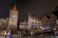 Plein laat in de avond in oude stad Neurenberg, Duitsland