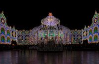 Op deze foto zie je verschillende lichtornamenten in vele kleuren. Het werd opgebouwd op het Stadhuisplein in het centrum van Eindhoven.…