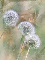 Laatste dag van oktober tijdens een korte wandeling bij mij in de buurt, lang een vijver zie ik deze drie paardebloem pluizen in de walkant staan, oke had de ultra 420 mm lens op de pentax K70 zitten, de lens een handmatige lens met een vaste lens opening van f/8.3 voor de technicie onder mijn bezoekers. Dat betekend kiezen uit sluitertijden en licht gevoeligheid.