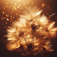 Pluizenbol, de pluizen van een uitgebloeide boem . Warme kleuren, goudkleurig