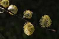 Pluizige gele bloesem van een wilgeboom gefotografeerd tijdens een wandeling door ons Belgische dorp