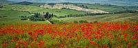 Podere Belvedere in Val D'orcia, Toscane in een bloeiend klaprozenveld.