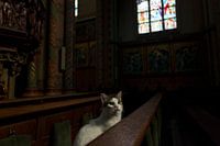 Poes in kerkbank, Willibrorduskerk Utrecht