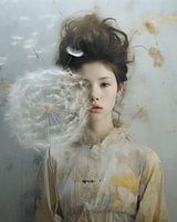 Poëtisch portret: "Paardenbloem". Een meisje houdt een hele grote paardenbloem vast, in zachte kleurtinten. Kies zelf het formaat en materiaal voor deze afbeelding en maak het helemaal passend voor jouw interieur.
