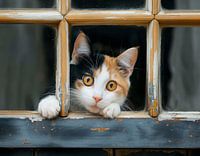 katten en poezen in en rondom het huis in de buurt van een raam of venster