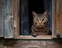katten en poezen in en rondom het huis in de buurt van een raam of venster