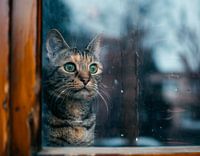 katten en poezen in en rondom het huis in de buurt van een raam of venster