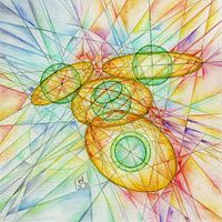 Analoge wiskundige kunst: De fysica van de krachtvrije gyroscoop, gevisualiseerd met behulp van traditionele technieken van beschrijvende meetkunde.