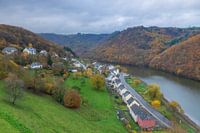Deze foto is gemaakt tijdens onze trip door Luxemburg. Tijdens de reis van de ene plek naar de andere, kwamen we dit uitzichtpunt tegen. Het dorpje aan de rivier, met daarbij de heuvels in herfstkleuren, geven het alles een fraai geheel! De huizen steken daardoor mooi af.