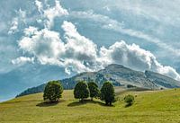 Pointe de Merdassier, alpenweide met vier bomen, La Clusaz, Haute-Savoie, Frankrijk, , alpen, landschap, weiland, bomen, zomer, bergen, heuvels,