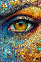 Fascinerend Mozaïek Sschilderij van een oog in kleurrijke puntjesstijl (puntillisme/pointilisme/stippelkunst)