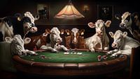 Pokerende koeien panorama schilderij dat een prachtige luxe aanvulling zal zijn in elke kamer. Met zijn unieke en stijlvolle uitstraling trekt het direct de aandacht. De schitterende kleuren en het bijzondere ontwerp maken dit kunstwerk 100% uniek en origineel. Het is de perfecte fotoprint om je interieur helemaal compleet te maken.