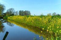 Driehuizen, Eilandspolder, Noord Holland. Prachtige voorjaarsdag, windstil, blauwe lucht en een berm vol bloeiend geel koolzaad.