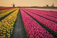 Tulpenveld bij zonsopkomst in Schermerhorn. Dit is Poldermolen G