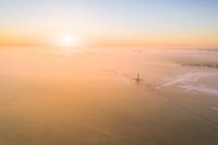 Uitzicht op het gebied De Koningslaagte en de gelijknamige poldermolen ten Noordwesten van de stad Groningen. Deze foto is genomen tijdens een mistige zonsopkomst.