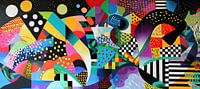 Details: abstract, modern, kleurrijk, speels, dynamisch, kunst, geometrisch, patronen, schilderij, veelzijdig