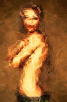 Ondanks de abstractie zijn er subtiele details aanwezig die de kijker uitnodigen om te ontdekken en zich te verbinden met het portret. De artistieke weergave van de lippenstift en nagels geeft het kunstwerk een unieke visuele esthetiek en voegt een gevoel van verfijning en individualiteit toe.