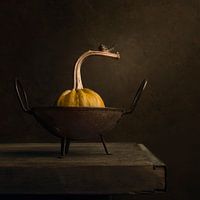stilleven met een pompoen en een slak. Een mooi stilleven met prachtig licht