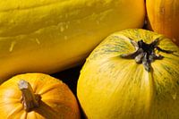 Als in het vroege najaar de zomerbloemen verwelken en de natuur zich opmaakt voor de naderende winter is er altijd weer een kleurrijk cadeautje. De pompoenen oogst is er en langs de fietsroutes om de stad kun je bij mij in de buurt een mooie selectie pompoenen vinden in veel kleuren en maten. Die liggen dan een aantal maanden de tuin op te vrolijken met hun felle gelen, oranjes en groenen. ook een ideaal beeld om een keukenwand mee op te fleuren.