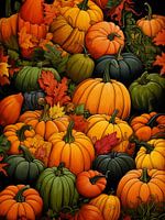 Illustratie van herfstsfeer in de vorm van gestapelde pompoenen.