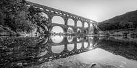 Romeins aquaduct / brug in Zuid-Frankrijk aan de rivier de Gard / Gardon in zwart-wit.