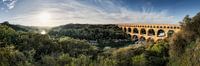 Romeins aquaduct / brug in Zuid-Frankrijk aan de rivier de Gard / Gardon bij zonsondergang.