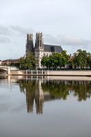 Pont à Mousson France 29th September 2024On a peaceful windless morning the Moselle passes through the town with the bridge and L’église Saint-Martin church reflected in the waters in symmetry.
