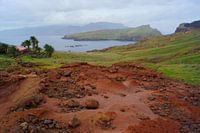 Rode vulkanische rotsen op het schiereiland Ponta de São Lourenço in Madeira, Portugal. Het landschap van dit prachtige eiland in de Atlantische Oceaan varieert van weelderig groen tot kaal en rotsachtig. Bekijk ook mijn andere foto's van Madeira.