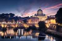 Een foto van de Ponte Sant'Angelo, Rome tijdens het blauwe uur. De Engelenbrug is een van oorsprong Romeinse brug in Rome. De brug verbindt de Engelenburcht (Castel Sant' Angelo) met de andere zijde van de Tiber.