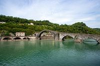 De Ponte della Maddalena is een brug uit 1300, die beide oevers van de Italiaanse rivier Serchio met elkaar verbindt. De middeleeuwse legende vertelt dat de brug ooit met de hulp van de duivel op 1 nacht gebouwd is. Als ruil, wilde de duivel de eerste ziel van de persoon die over de brug liep. Dat gebeurde echter niet, maar vanaf dat moment staat de brug bekend als de duivelsbrug. Vanaf de brug heb je een prachtig uitzicht over de blauwe rivier en de mooie groene heuvels. Dat maakt deze foto een mooi kunstwerk voor bij jou aan de muur!