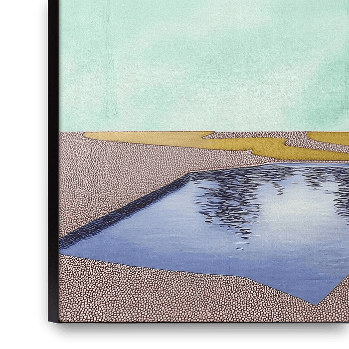 ZERK toont een verstild, abstract zwembadlandschap waarin water, ruimte en architectuur samenkomen. Door het gebruik van vereenvoudigde vormen en een heldere compositie balanceert het werk tussen herkenning en abstractie. Het artwork is digitaal opgebouwd en geïnspireerd op traditionele materialen en grafische technieken, waarbij…