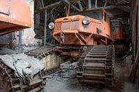 Een aantal achtergelaten rupsvoertuigen die bestemd waren voor poolexpedities. Ze stammen uit de jaren '60.