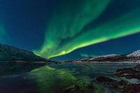 Over ‘Poollicht Aurora in nachtelijke hemel over Noord-Noorwegen’ van Sjoerd van der Wal Fotografie
