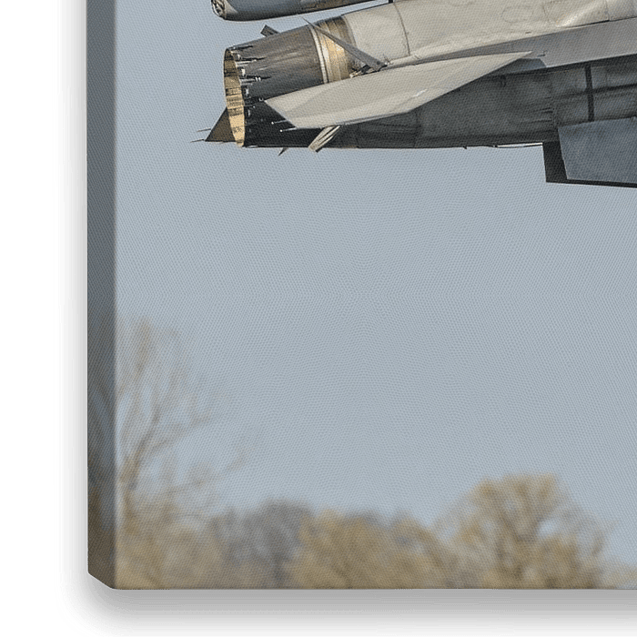 F-16 van de Poolse Luchtmacht (4055) vlak voor de landing op vliegbasis Leeuwarden. De staart van het toestel is versierd met een deel van de kop van een tijger.