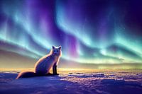Poolvos zittend in het noordpoolgebied met Aurora Borealis illustratie