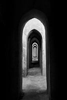 Zwart wit Poorten in het paleis van Real Alcazar in Sevilla. Abstracte Kunst
