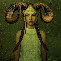 In tegenstelling tot haar kwetsbare kanten jurkje heeft ze twee stoere ramshoorns bovenop haar badmuts gezet, die haar een krachtige en mysterieuze uitstraling geven. Deze combinatie van…