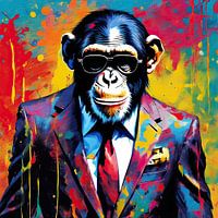 Pop Art Chimp 06.54 - een Pop Art Schilderij als echte Blikvanger... Uit onze collectie 'Sharply Dressed Animals'. Dit schilderij krijgt gegarandeerd aandacht...