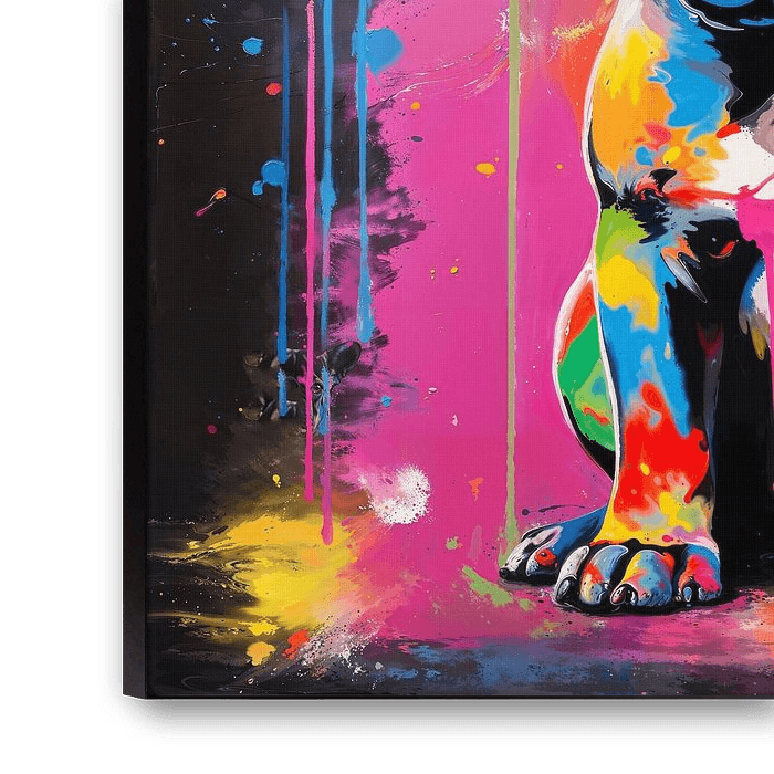 Een Franse bulldog in de stijl van een kleurrijk pop-artschilderij.